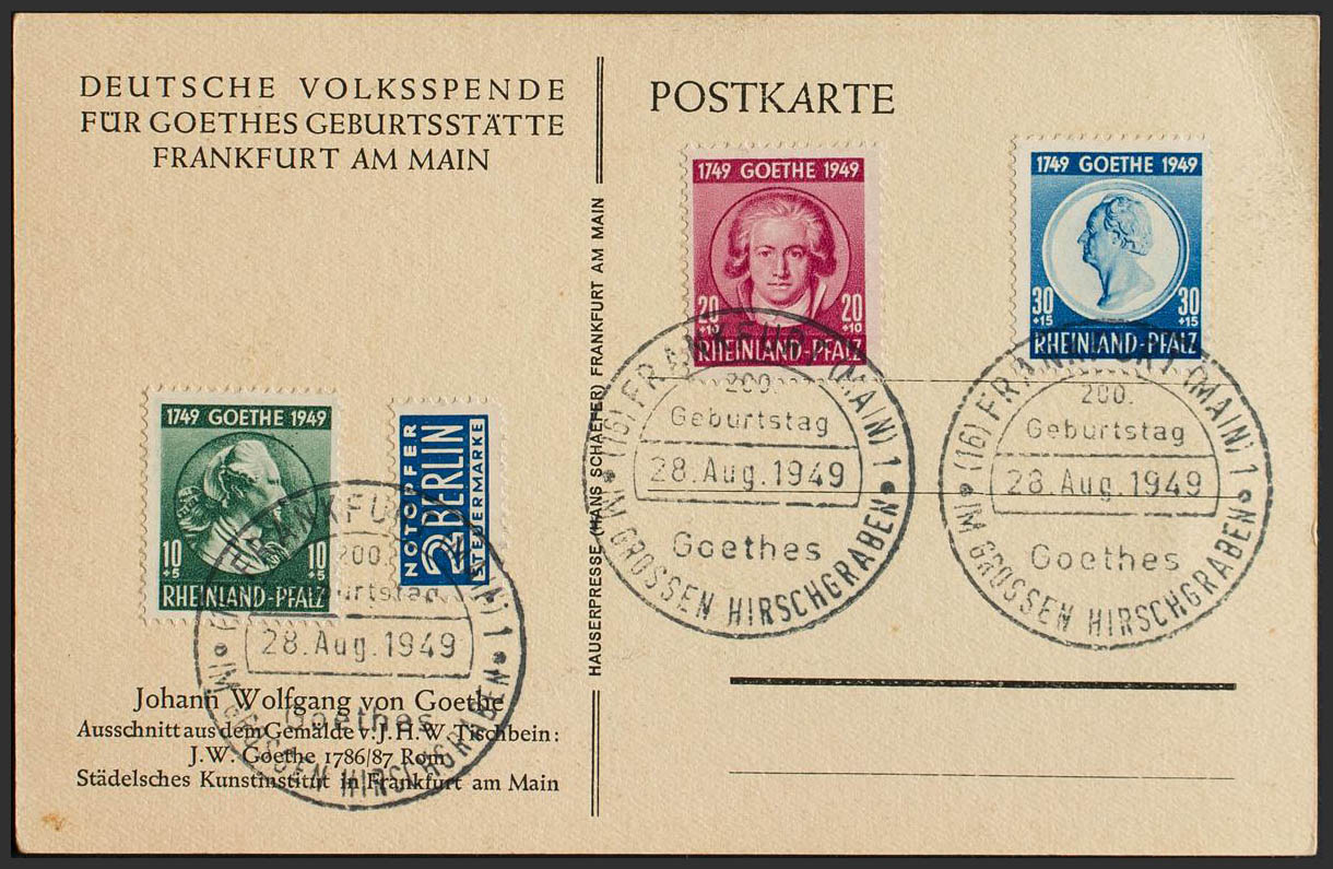 Yvert 45/47. 1949. Serie completa sobre Tarjeta Postal con matasello conmemorativo. MAGNIFICA.