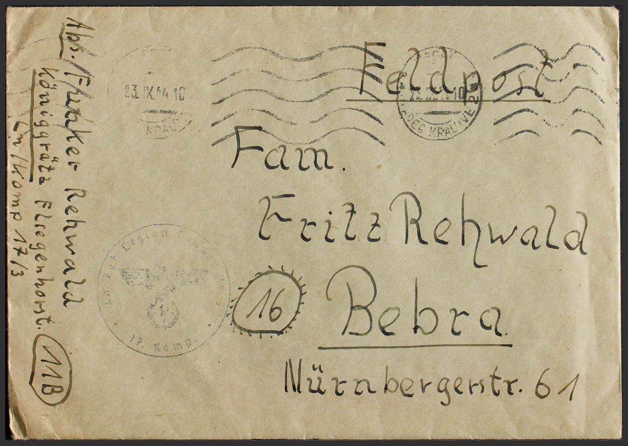 1944. Dirigida a BEBRA (remitida por el Feldpost 11B). Marca RGT.LEGION CONDOR NR... MAGNIFICA.
