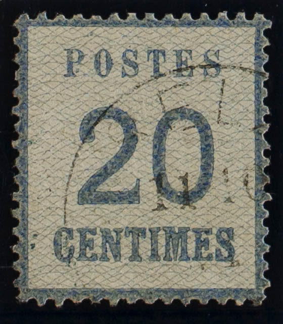Yvert 6b. 1870. 20 cts ultramar claro (variedad "burelaje" invertido). Matasello BELFORT. MAGNIFICO. Yvert 2010: 125 Euros