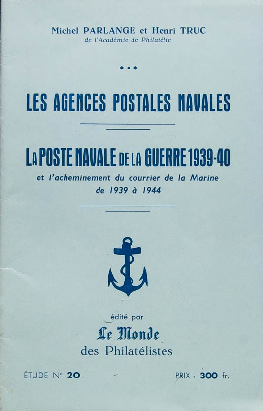 (1970ca). LES AGENCES POSTALES NAVALES LA POSTE NAVALE DE LA GUERRE 1939-40. Michel Parlange y Henri Truc. Edita Le Monde (1970ca).