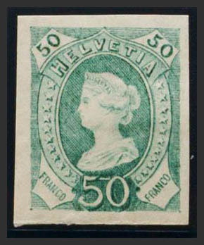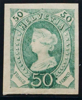 (★)(1905ca). 50 cts verde LIBERTAS. PRUEBA DE COLOR, de un diseño no adoptado. MAGNIFICA.