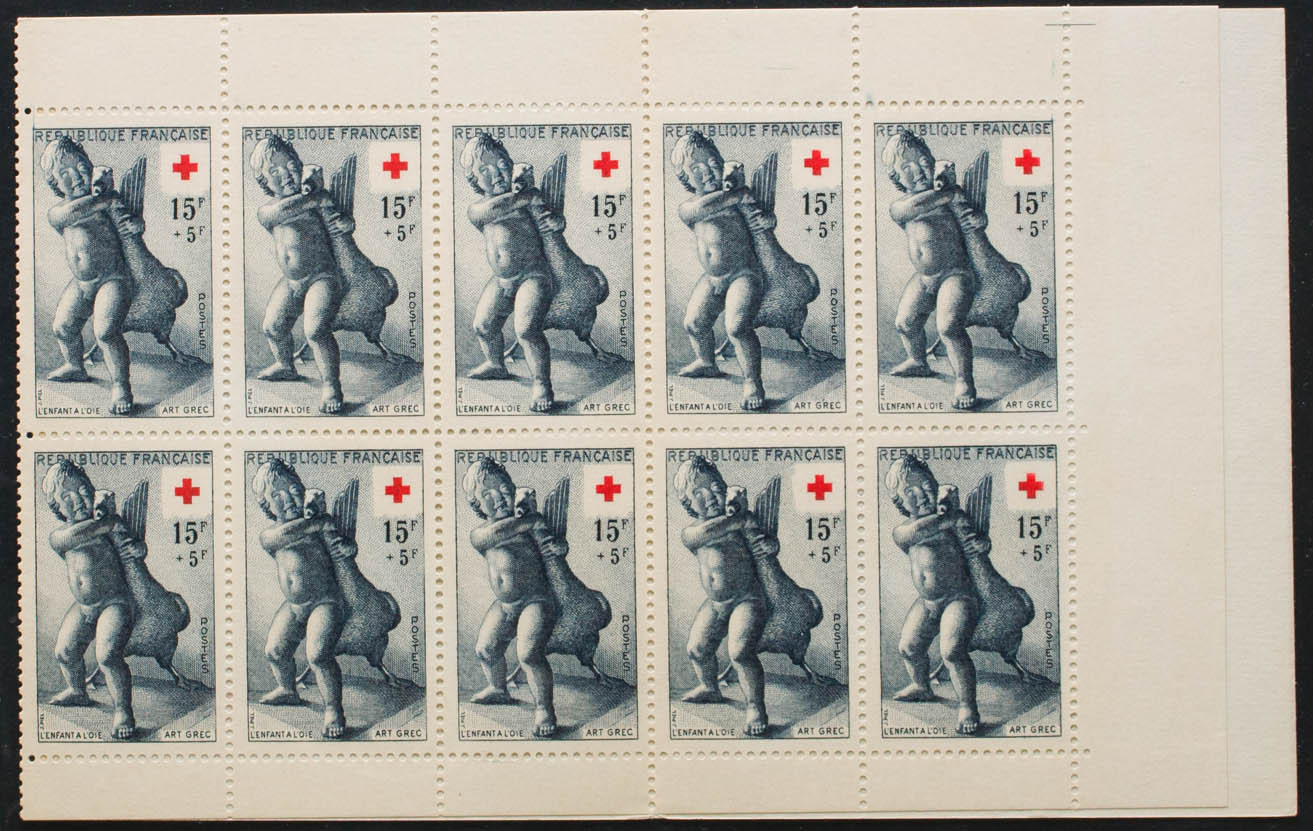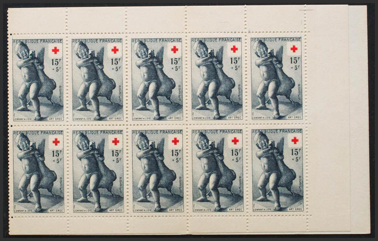 ★★Yvert C2004. 1955. 15 f + 5 f azul y rojo. Carnet CRUZ ROJA. MAGNIFICO Y RARO. Yvert 2019: 450 Euros