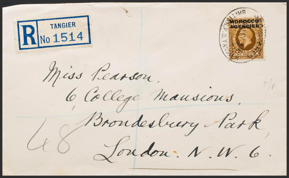 16. 1937. 1 s castaño amarillo. Certificado de TANGER a LONDRES (GRAN BRETAÑA). Al dorso llegada. MAGNIFICA.