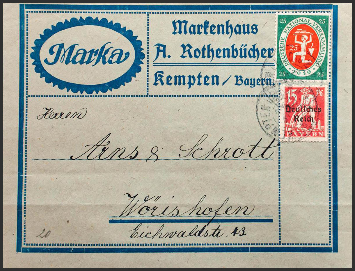 Yvert 108. 1921. 25 p verde y rojo y 15 m rojo. KEMPTEN a WORISHOFEN. MAGNIFICA.