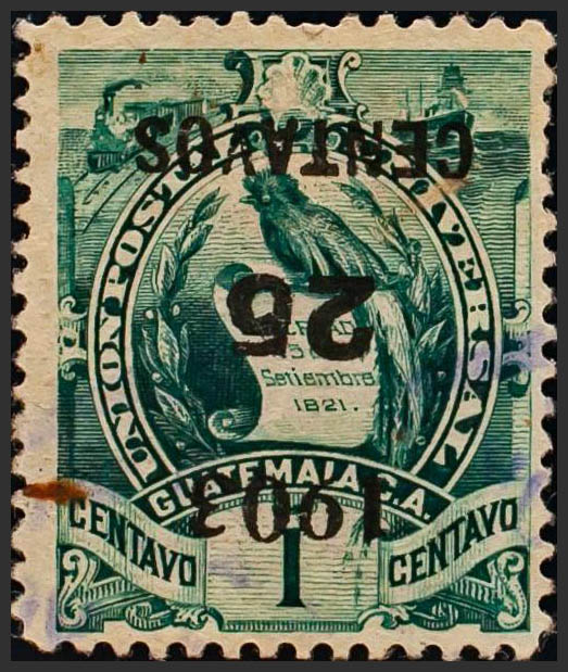 Yvert 130a. 1903. 25 ctvos sobre 1 ctvo verde. SOBRECARGA INVERTIDA. MAGNIFICO. Yvert 2020: 80 Euros