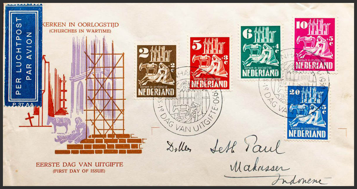 Yvert 542/46. 1950. Serie completa. Sobre del Primer dÃa. MAGNIFICA.