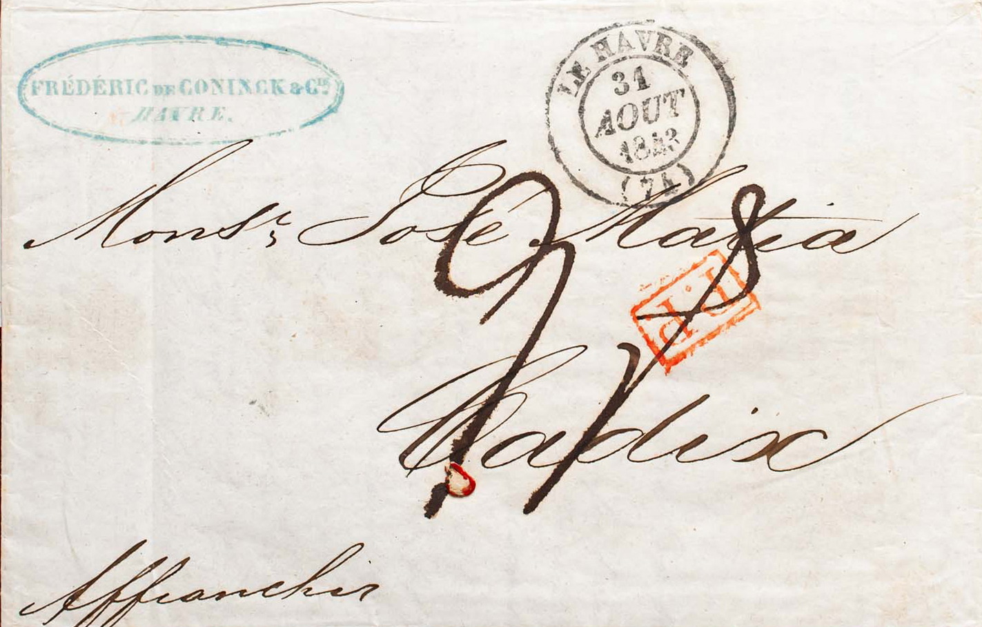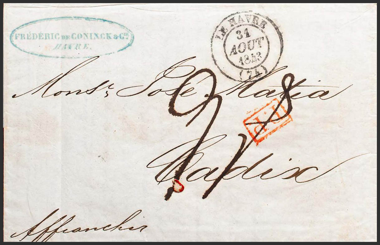 1843. LE HAVRE a CADIZ. Fechador mediano LE HAVRE y anotación manuscrita "Affranchir", al dorso llegada. MAGNIFICA.
