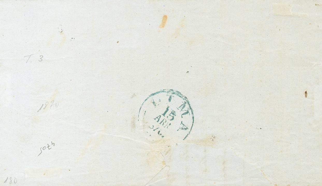 Yvert 13. 1870. 1 dinero verde. HUANCAYO a LIMA. Matasello HUANCAYO (Tipo 3, según G.LAMY). LUJO.