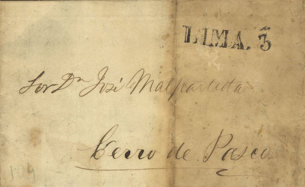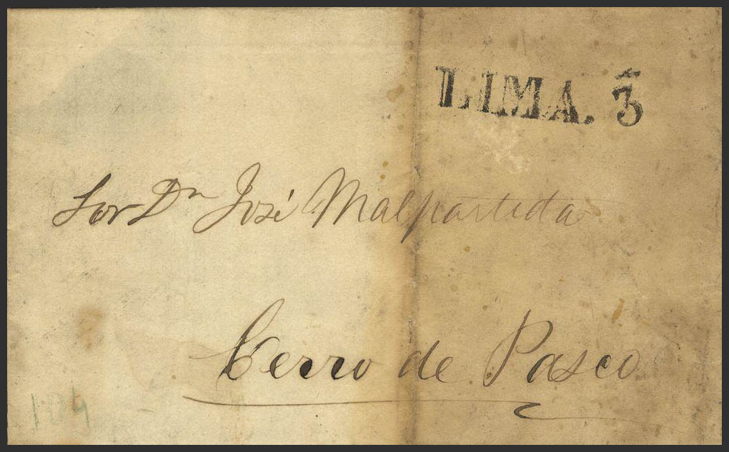 1860. LIMA a PASCO. Marca LIMA (Colareta 18) y porteo "3" (Colareta 18P). BONITA.