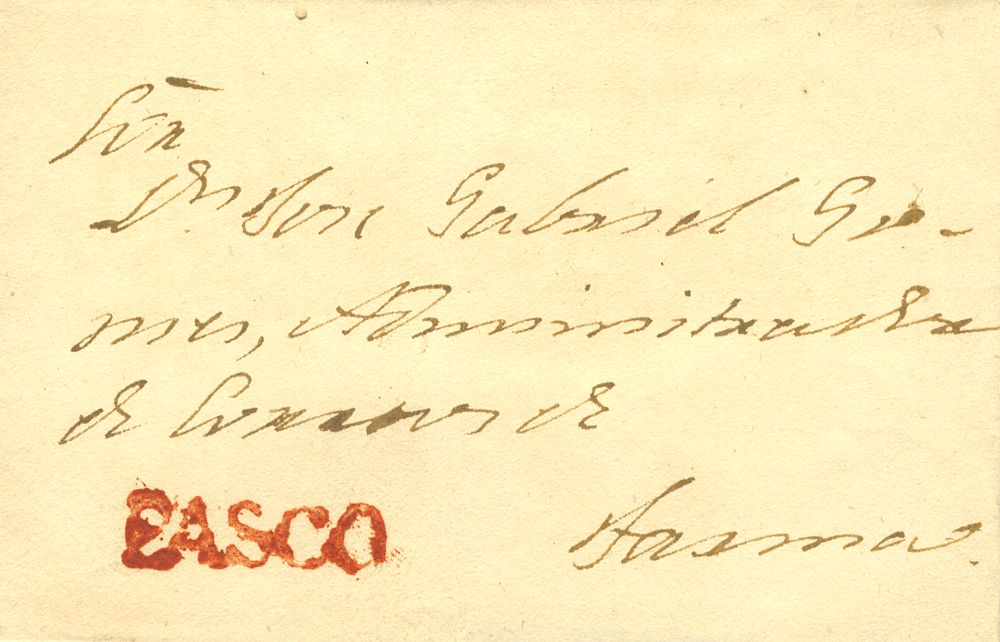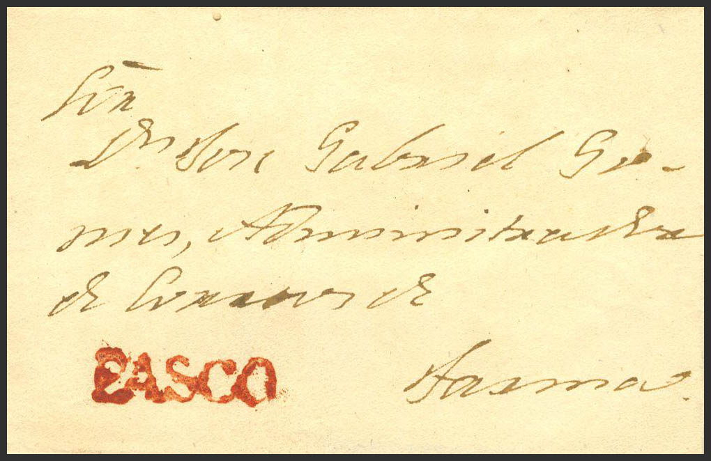(1830ca). PASCO a TACNA. Marca PASCO, en rojo (Colareta 1). MAGNIFICA.