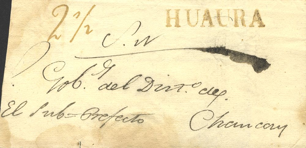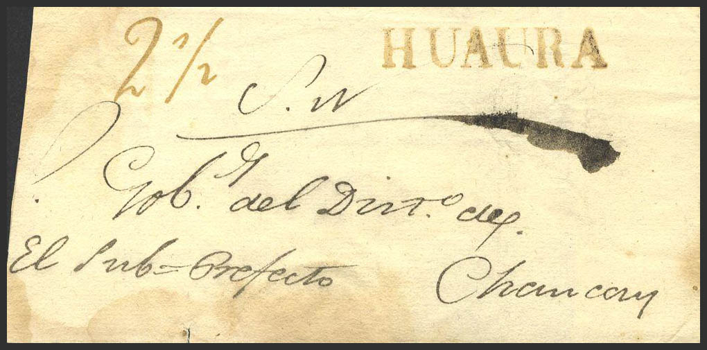 (1834ca). HUAURA a CHANCAY. Marca HUAURA, (Colareta 2). MAGNIFICA.