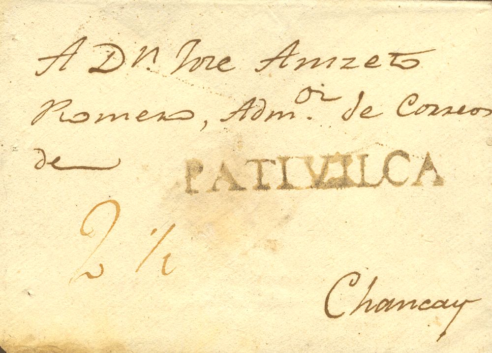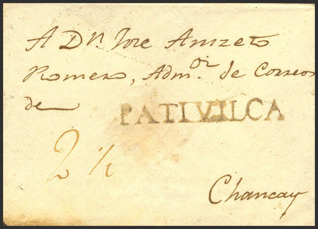 (1847ca). PATIVILCA a CHANCAY. Marca PATIVILCA (Colareta 1). MAGNIFICA.