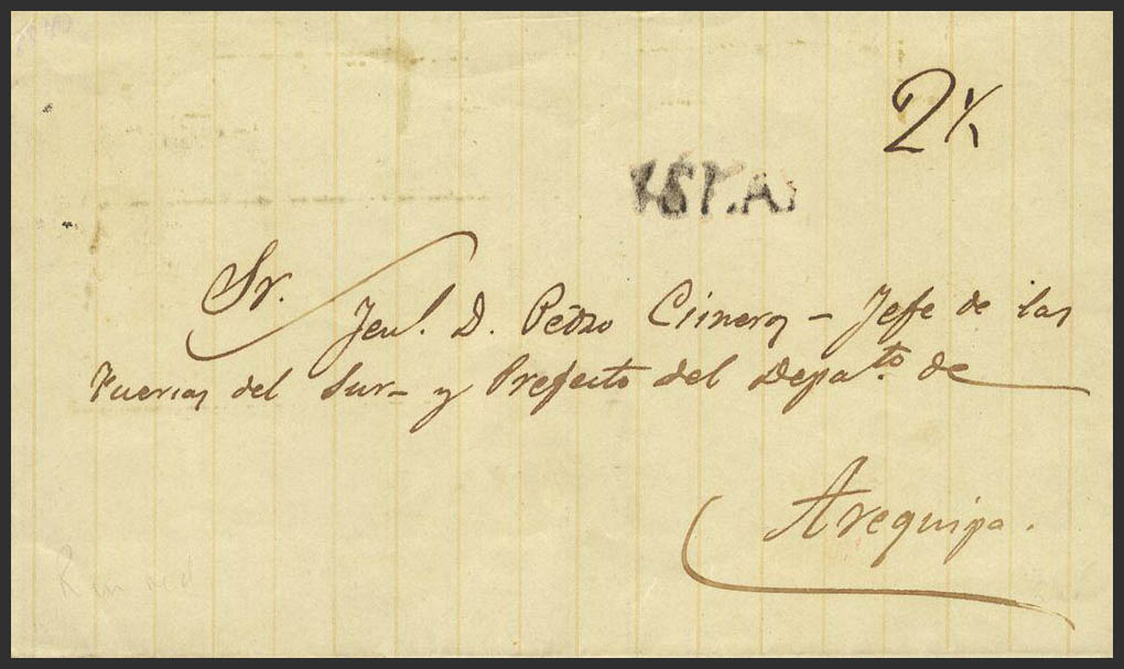 (1830ca). ISLAY a AREQUIPA. Marca ISLAY, en negro. BONITA Y NO RESEÑADA EN ESTE COLOR.