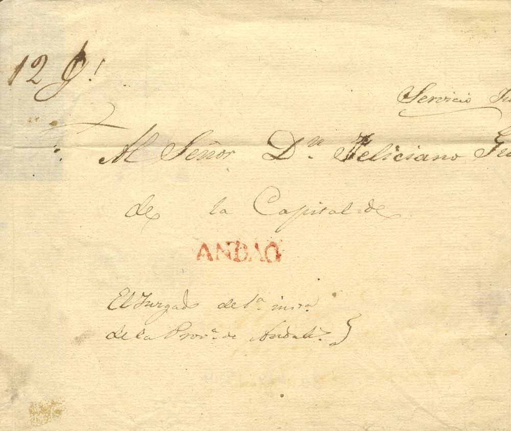 1844. ANDAHUAYLAS a AYACUCHO. Marca ANDAG, en rojo (Colareta 2). MAGNIFICA Y RARISIMA.