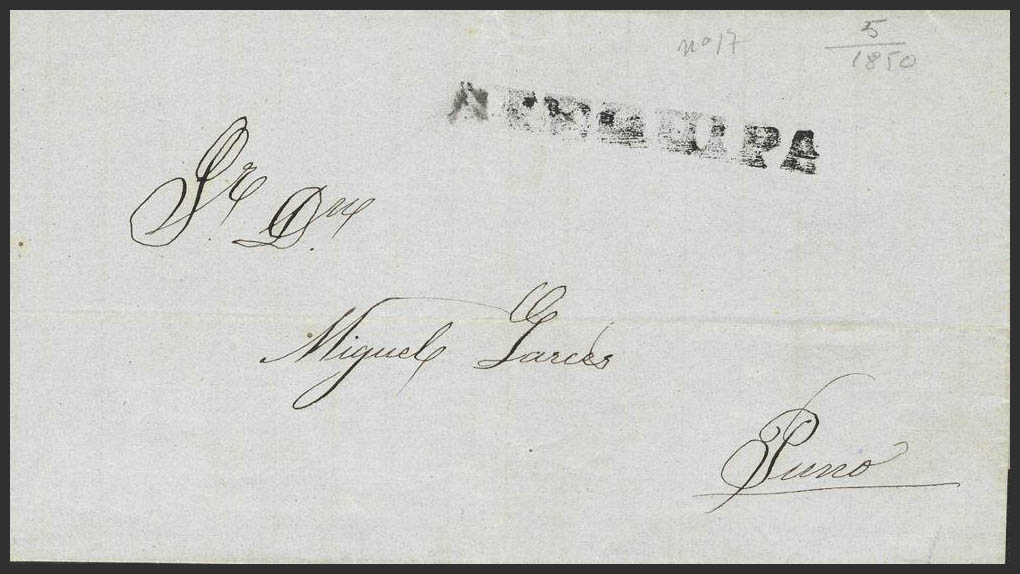 1850. AREQUIPA a PUNO. Marca AREQUIPA (Colareta 5). MAGNIFICA.