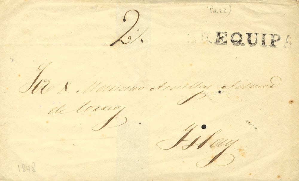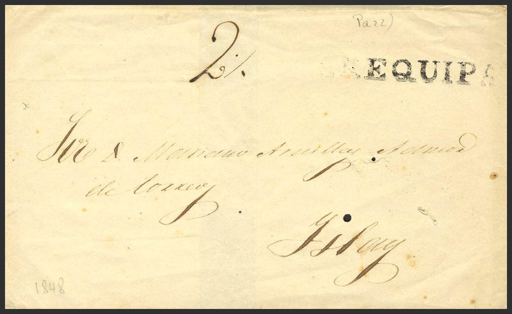 (1850ca). AREQUIPA a ISLAY. Marca AREQUIPA (Colareta 5). MAGNIFICA.