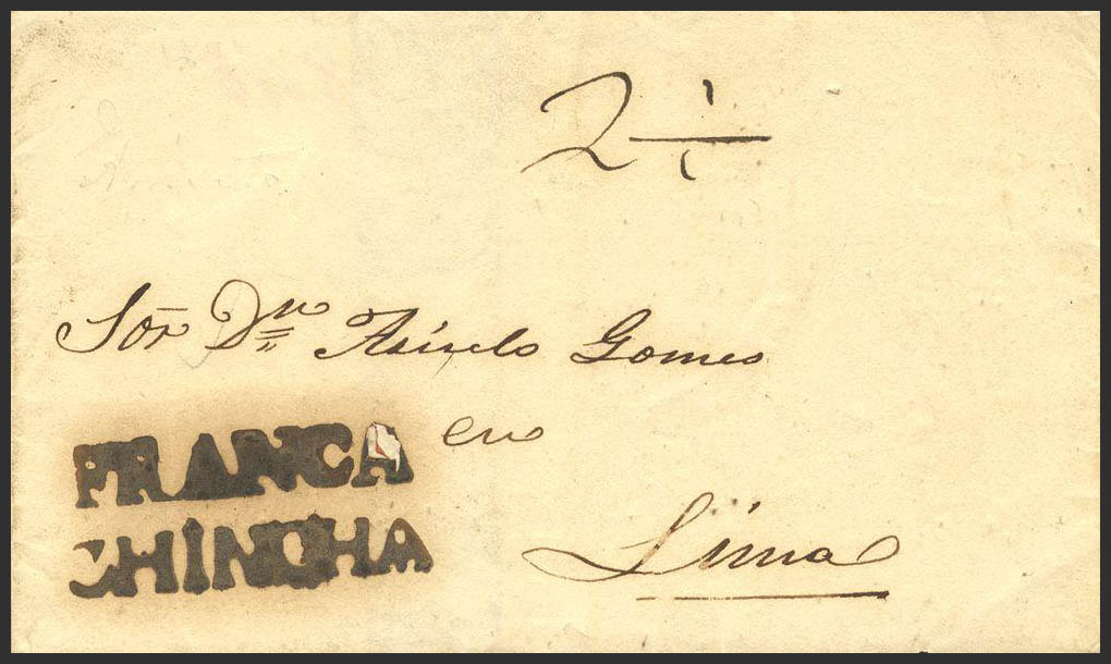 (1850ca). CHINCHA a LIMA. Marca FRANCA / CHINCHA, en negro, no reseñada. MAGNIFICA.