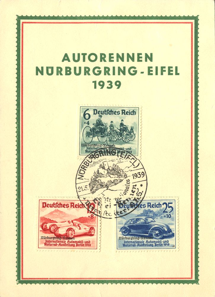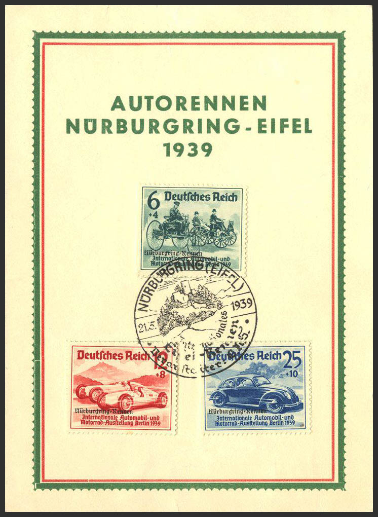 Yvert 629A/C. 1939. Serie completa, sobre tarjeta. Matasello NURBURGRING (EIFEL). MAGNIFICA. Yvert 2011: 135 Euros