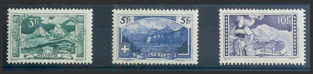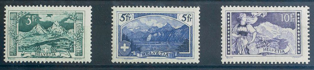 ★Yvert 142/44. 1914. 3 fr verde, 5 fr azul violeta y 10 fr violeta. Valores clave. MAGNIFICOS. Yvert 2014: 945 Euros