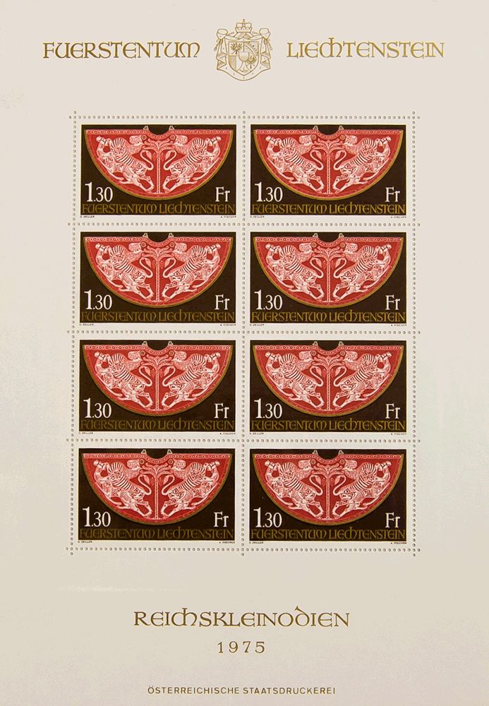 ★★Yvert 577(8). 1975. 1´30 fr castaño, rojo y oro. MINIPLIEGO DE OCHO. MAGNIFICO. Yvert 2012: +36 Euros