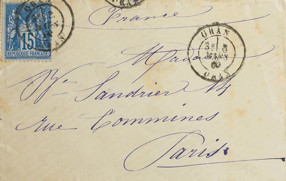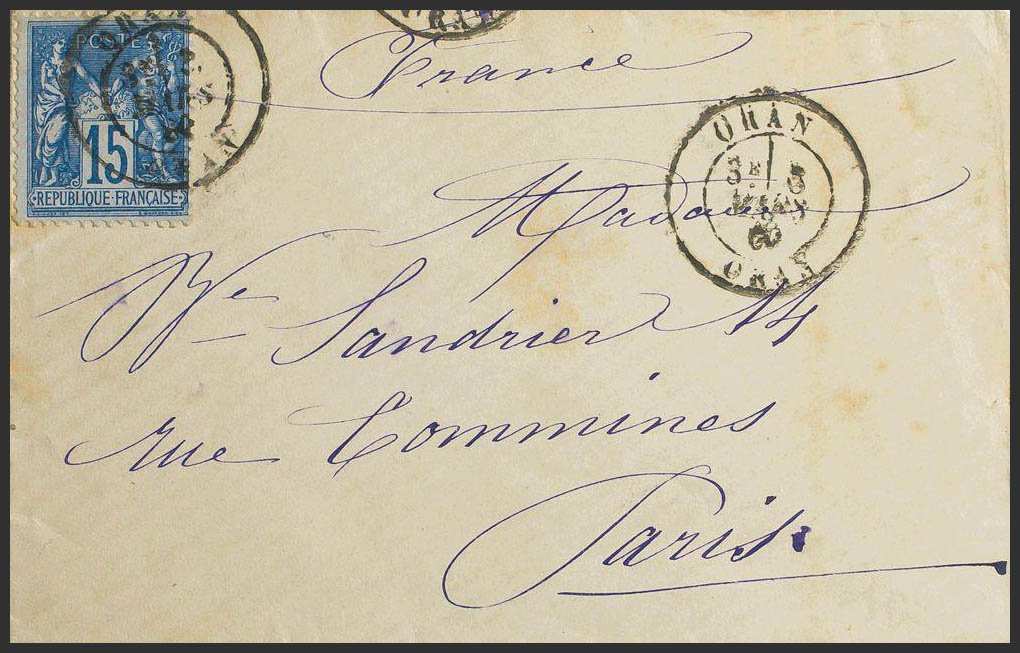 Yvert Francia 90. 1880. 15 cts azul. ORAN a PARIS. Matasello ORAN / ORAN. MAGNIFICA.