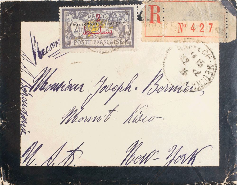 Yvert 52. 1926. 2 p sobre 2 fr violeta. Certificado de MARRAKECH a MOUNT KISCO (USA). Al dorso llegada. MAGNIFICA.