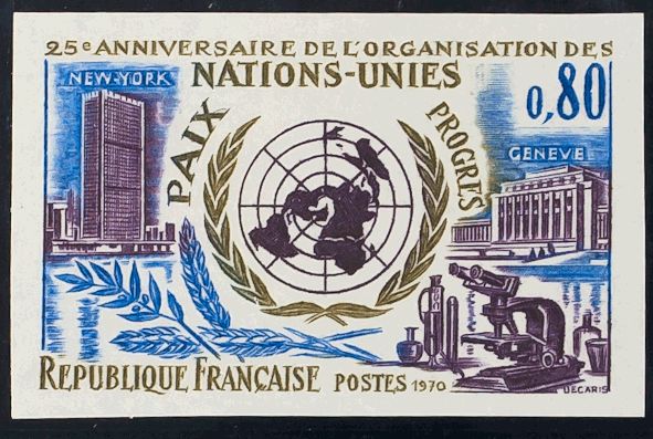 ★★Yvert 1658a. 1970. 80 cts multicolor. SIN DENTAR. MAGNIFICO. Yvert 2014: 54 Euros
