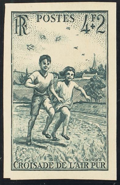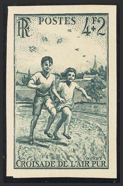 ★Yvert 740. 1945. 4 fr + 2 fr verde azul. SIN DENTAR. MAGNIFICO. Yvert 2014: 46 Euros