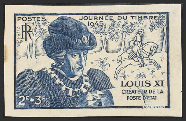 ★Yvert 743a. 1945. 2 fr + 3 fr azul. SIN DENTAR. MAGNIFICO. Yvert 2014: 50 Euros