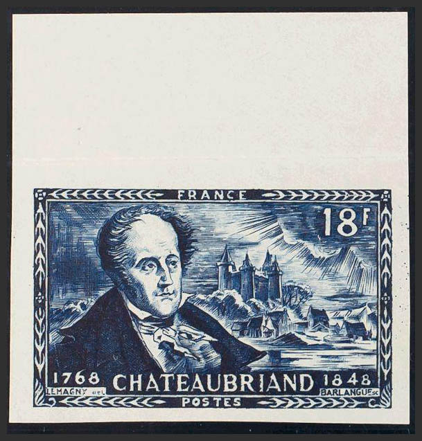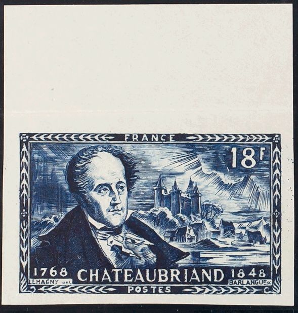 ★★Yvert 816a. 1948. 18 fr azul. SIN DENTAR. MAGNIFICO. Yvert 2014: 40 Euros