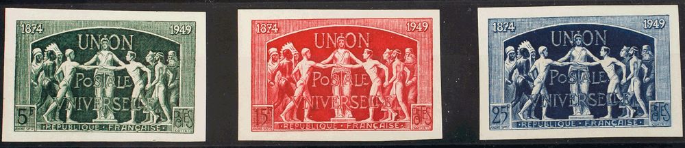 ★Yvert 850/52. 1949. Serie completa. SIN DENTAR. MAGNIFICA. Yvert 2014: 690 Euros