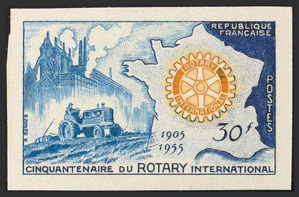 ★Yvert 1009a. 1955. 30 fr azul y amarillo. SIN DENTAR. MAGNIFICO. Yvert 2014: 125 Euros