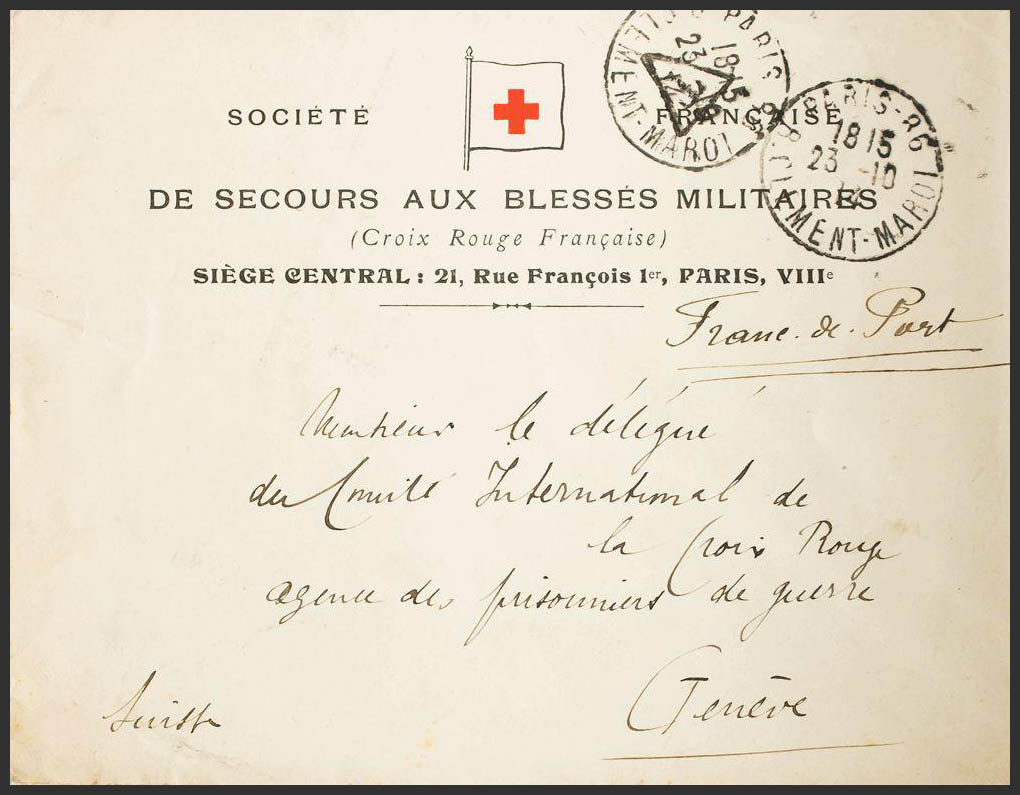 1914. Carta con membrete de la SOCIETE DE SECOURS AUX BLESES MILITAIRES. PARIS a GINEBRA. MAGNIFICA.