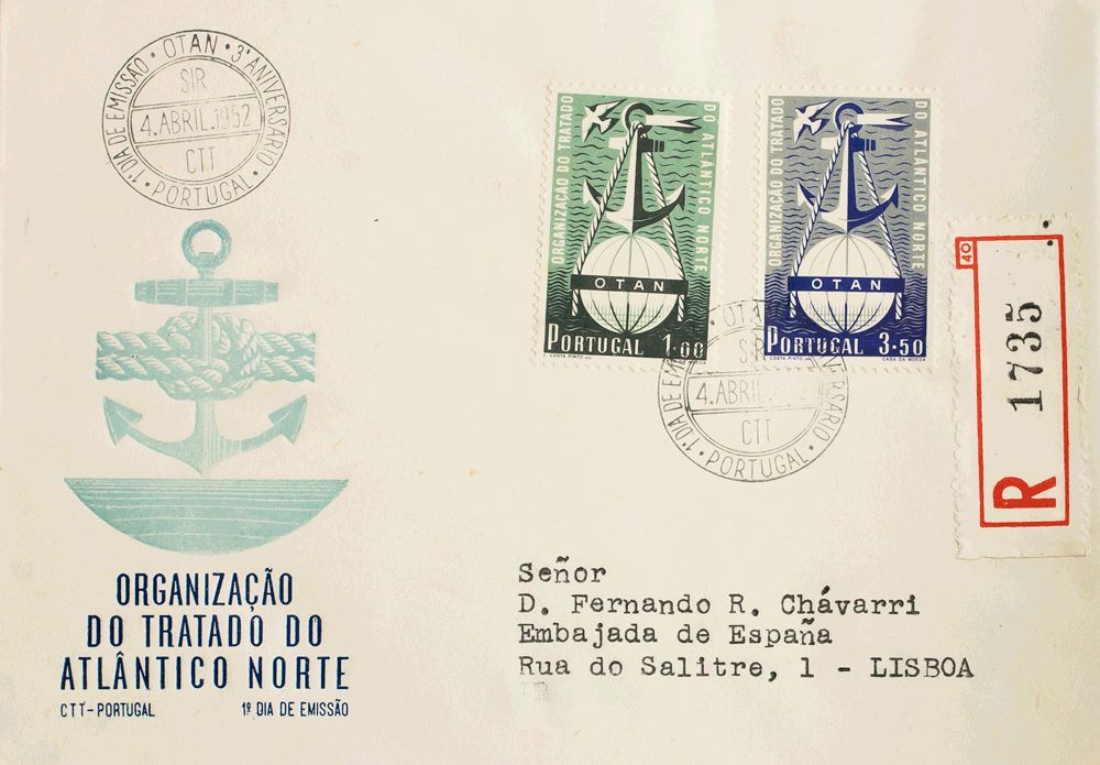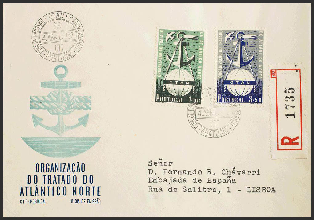 Yvert 760/61. 1952. Serie completa. Sobre de Primer DÃa circulado en LISBOA. MAGNIFICO.
