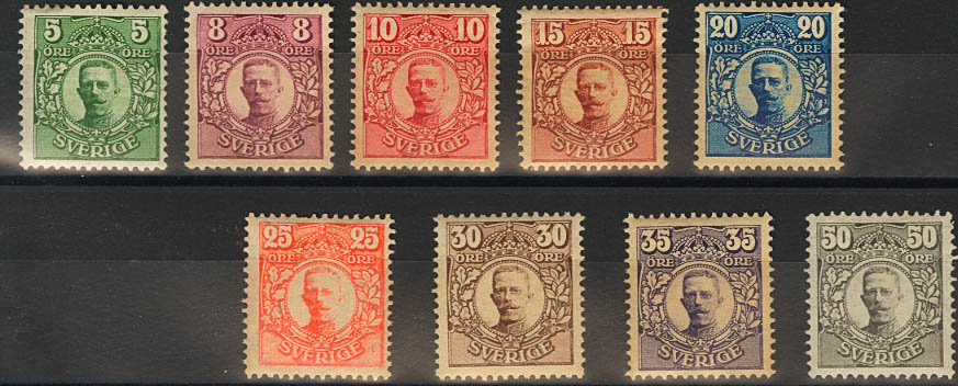 ★Yvert 62/72. 1910. Serie completa, a falta de 20 ore azul y 25 ore naranja (Yvert 66 y 68). MAGNIFICA. Yvert 2017: 170 Euros