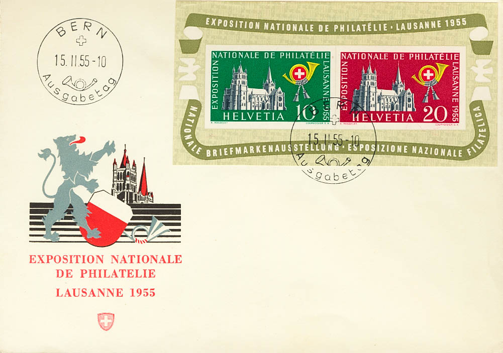 Yvert 15. 1955. Hoja bloque. Sobre Primer DÃa. MAGNIFICO.