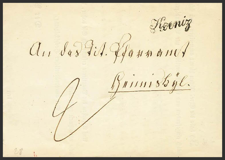 1846. KONIZ a REISISWIL. Marca KOENIZ, en negro y porteo manuscrito. MAGNIFICA.