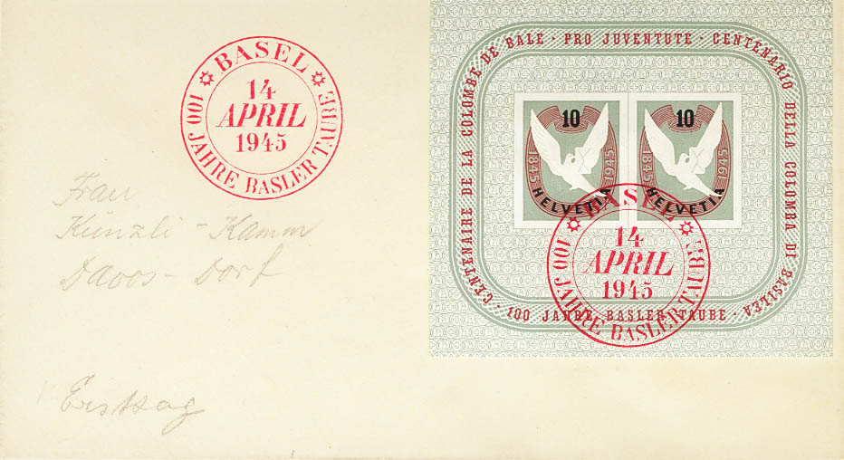 Yvert 12. 1945. Hoja bloque. Matasello de Primer DÃa. MAGNIFICA.