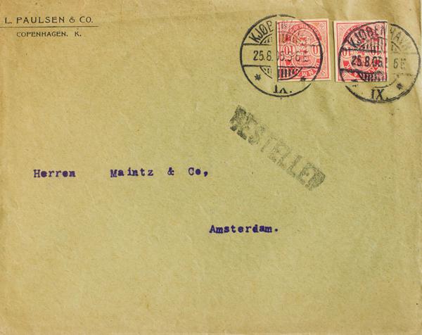 Yvert 148, 150. 1904. 5 ctvos azul y 8 ctvos violeta negro. Certificado de NUEVA YORK a HELSINGFORS (FINLANDIA). En el frente marca REGISTERED / SUBSTA Nº71, en violeta y al dorso llegada. MAGNIFICA.