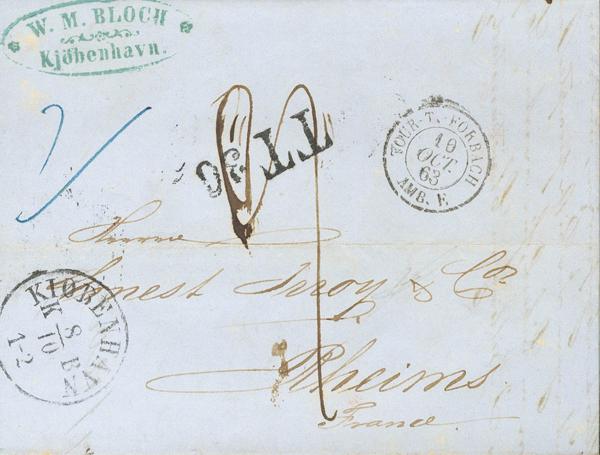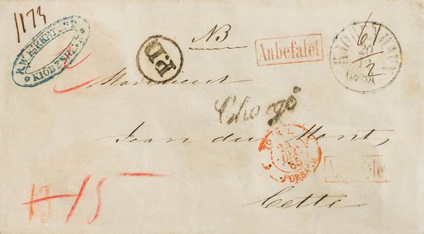 1851. PHILADELPHIA a STOCKPORT (INGLATERRA). Fechador PHILADEPHIA / P.A., en azul y marca PHILA. / PAID, en rojo. MAGNIFICA.