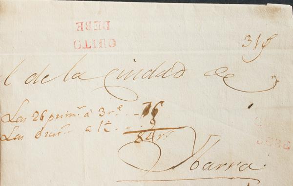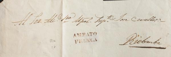 (1840ca). AMBATO a RIOBAMBA. Marca AMBATO / FRANCA, en rojo. MAGNIFICA.