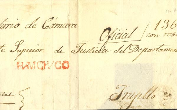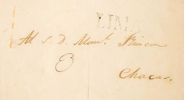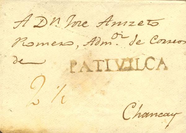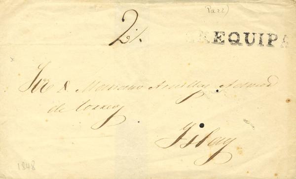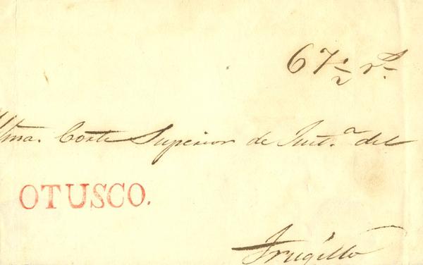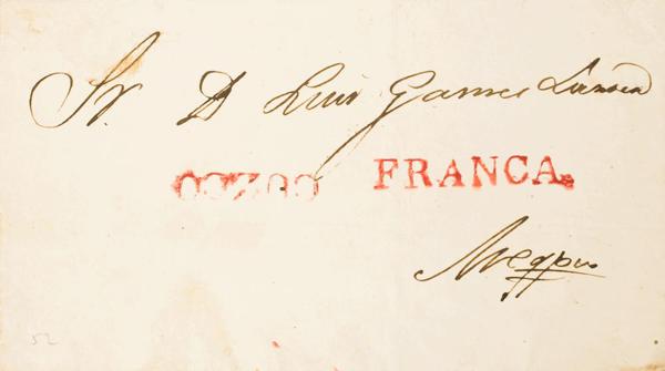 1835. Certificado de VILA FRANCA DE XIRA a OBIDOS. Marcas Vª. FRANCA D. RESTAM. y SEGURA, en azul (VFX 4, VFX-S2). MAGNIFICA Y RARISIMA.