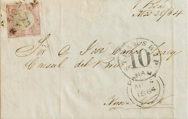 Yvert 11. 1856. 25 reis azul. OPORTO a NAPOLES (ligeramente erosionada en el frente). En el frente porteos "53" y "54" manuscritos. MAGNIFICA Y RARA, CIRCULADA CON TARIFA PARA TERRITORIO PORTUGUES AL NO EXISTIR CONVENIO.