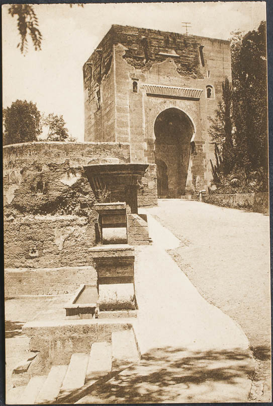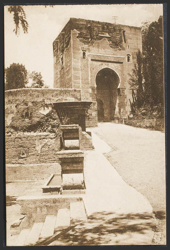 GRANADA. La Alhambra. Pilar de Carlos V y Torre de la Justicia.