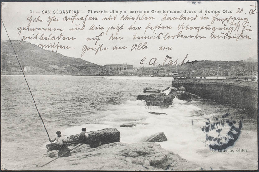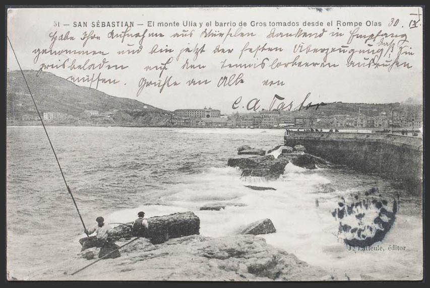 SAN SEBASTIAN. El monte Ulía y el barrio de Gros desde el Rompe Olas.