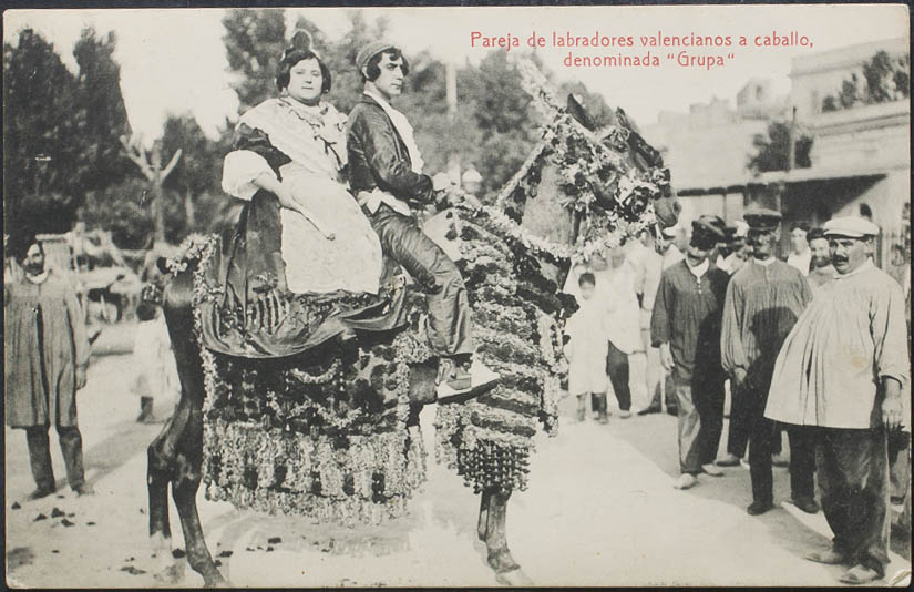 VALENCIA. Pareja de labradores valencianos a caballo, denominada "Grupa"