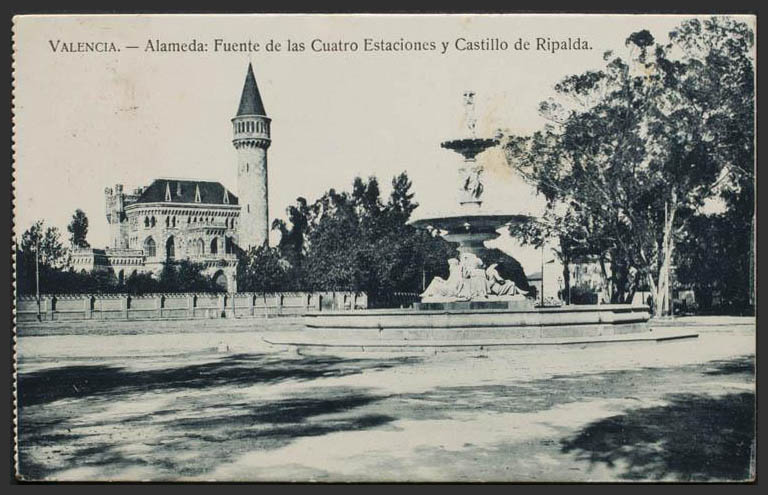 VALENCIA. Alameda: Fuente de las Cuatro Estaciones y Castillo de Ripalda.