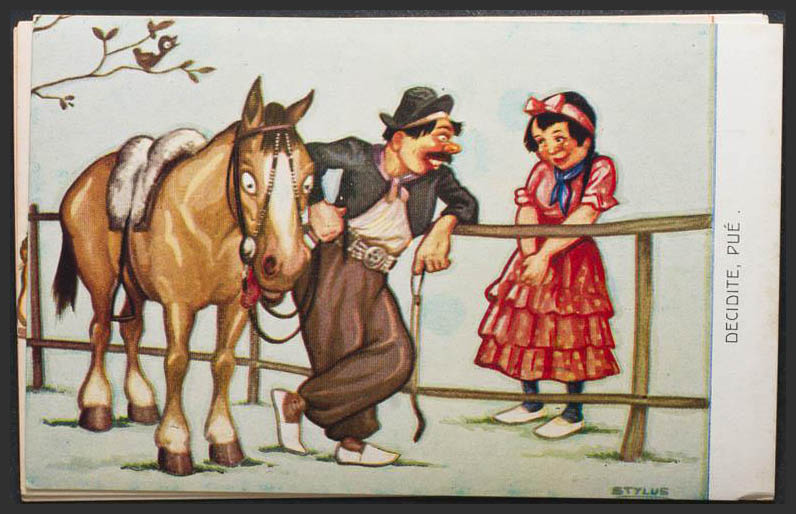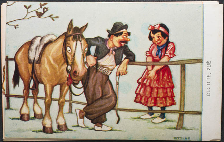 3 postales argentinas. Cinchando al sotreta..! (2 iguales) y Decidite, pué.