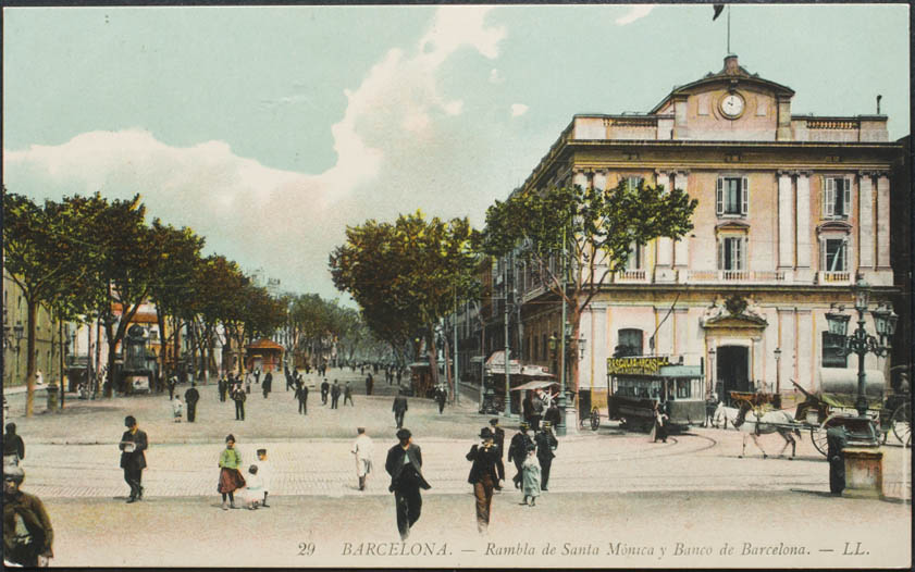 BARCELONA. Rambla de Santa Mónica y Banco de Barcelona.