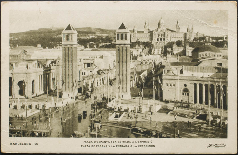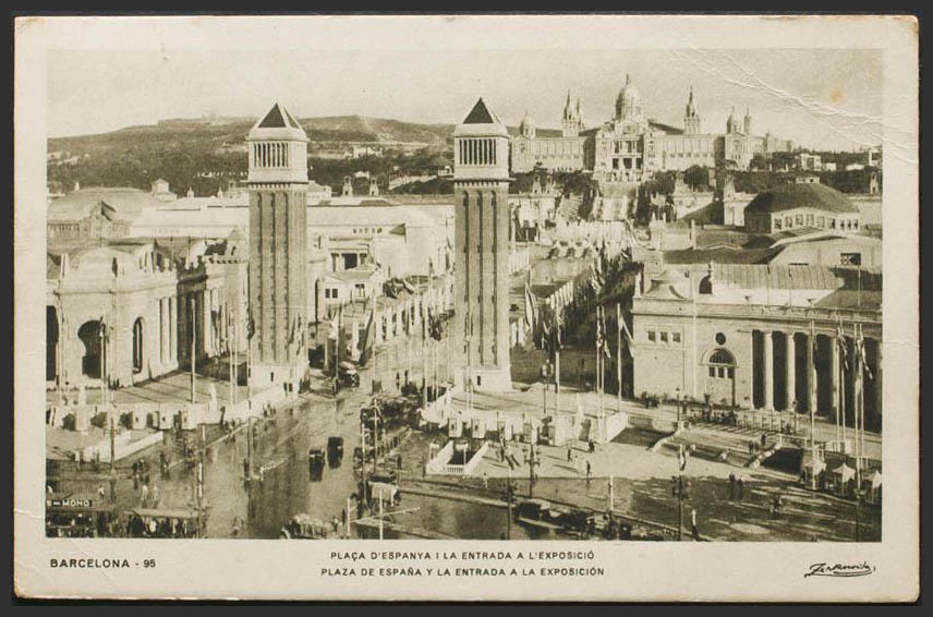 BARCELONA. Plaza de España y la entrada a la Exposición.